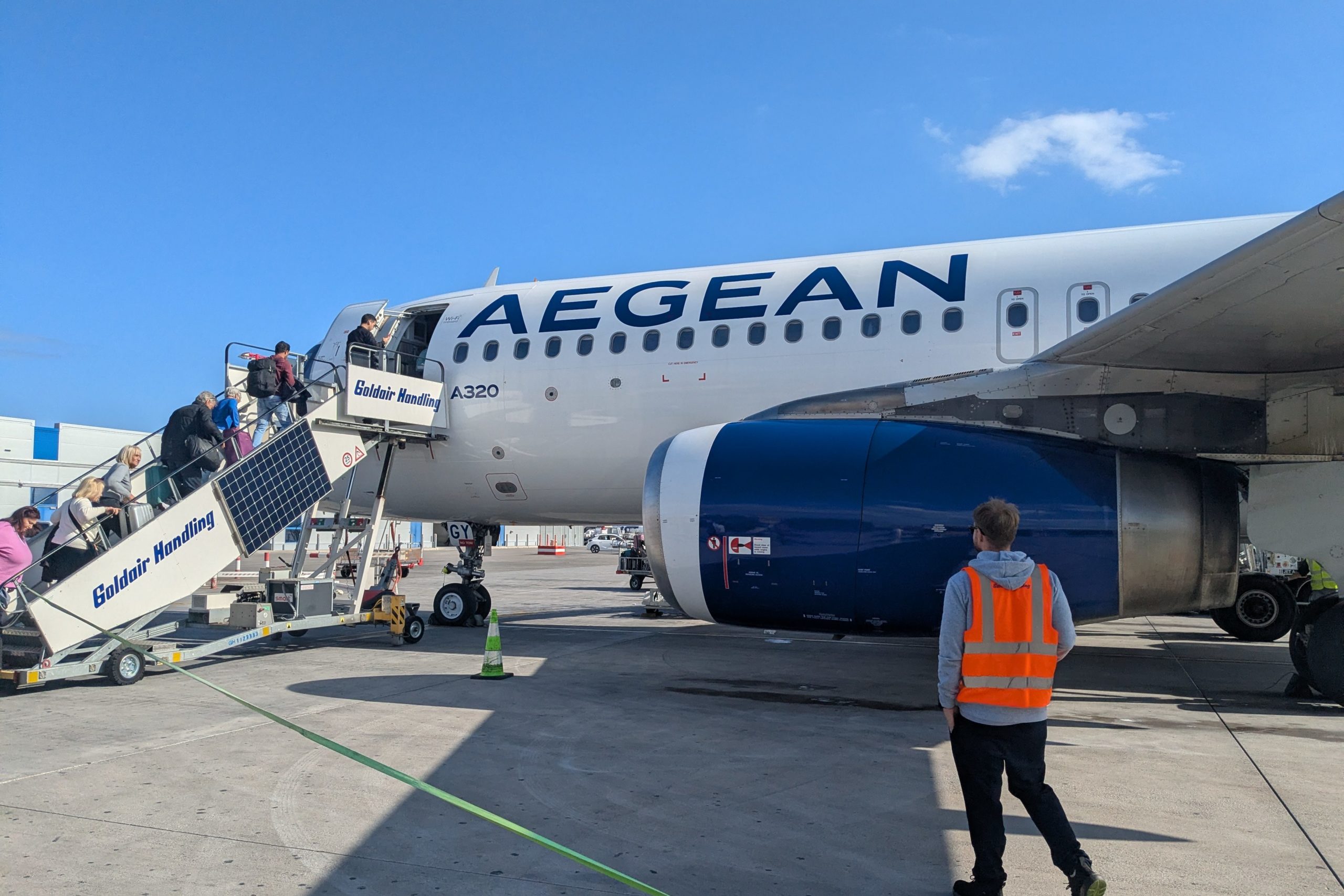 できるだけ色んな航空会社(スターアライアンスに限る)を利用してみたいので、今回エーゲ航空をチョイスした。当然最初から機材はA320等の小型機だと知ってはいるものの、やっぱり少しさびしい。特にビジネスクラスは、エコノミークラスのシート横3席の中央席を空けているだけの「残念仕様」のためつまらない。ANAの国内線プレミアムクラスの方がずっと華やかなのである。