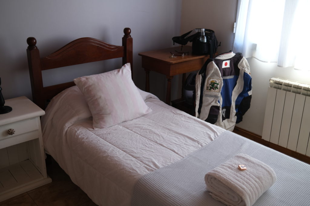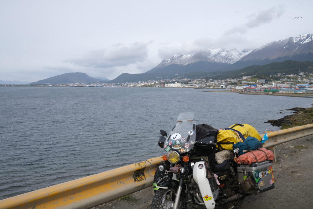 1月2日(金曜):朝ご飯の後、クリーニング屋さんに預けたものを取りに行く。しっかりとキレイになっていて感謝である。早速着替えて、ホテルをチェックアウトし地下駐車場に行きエンジンをかける。チョークを引き、セル一発で始動。ヘルメットをかぶってウシュアイアの街を後にする。