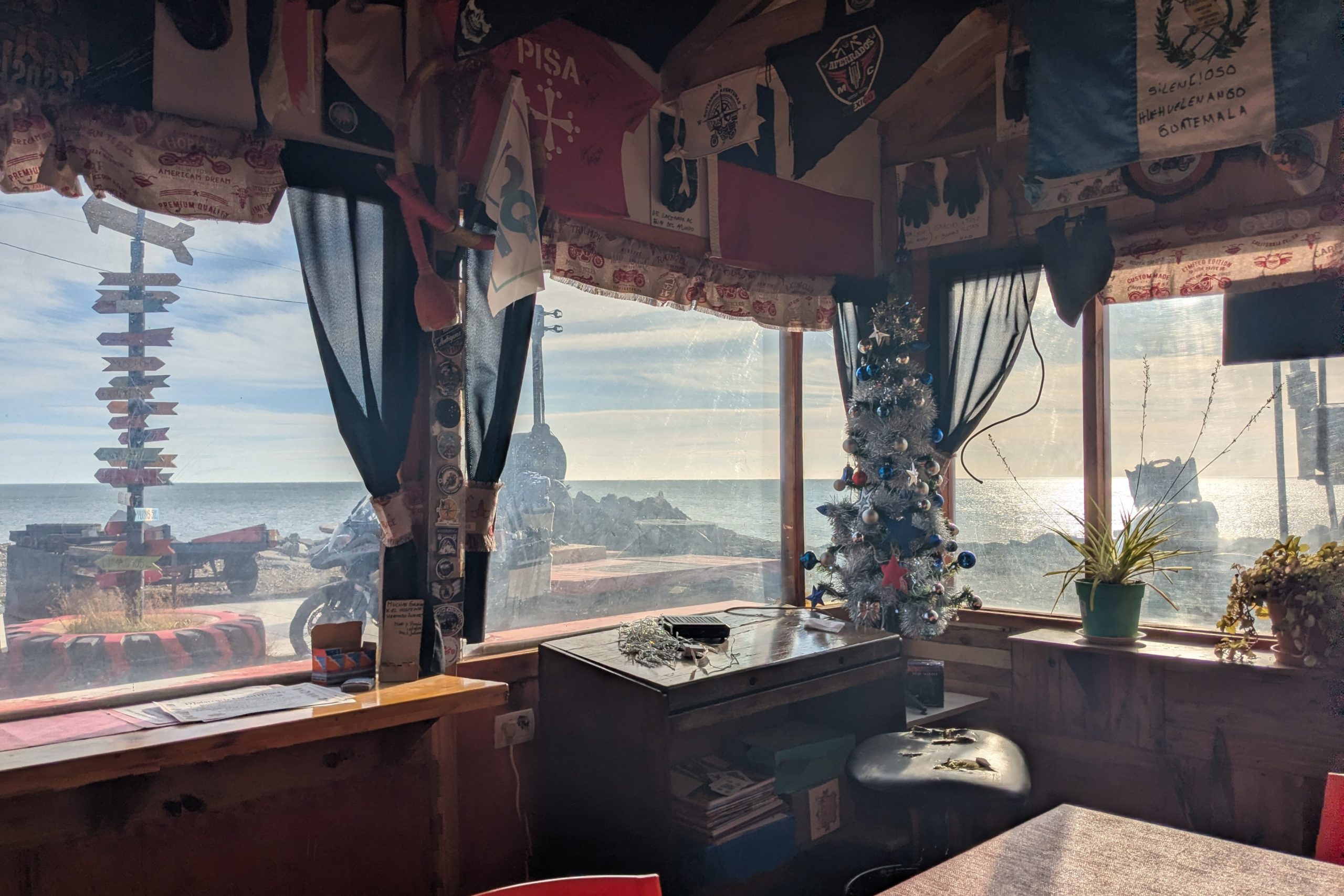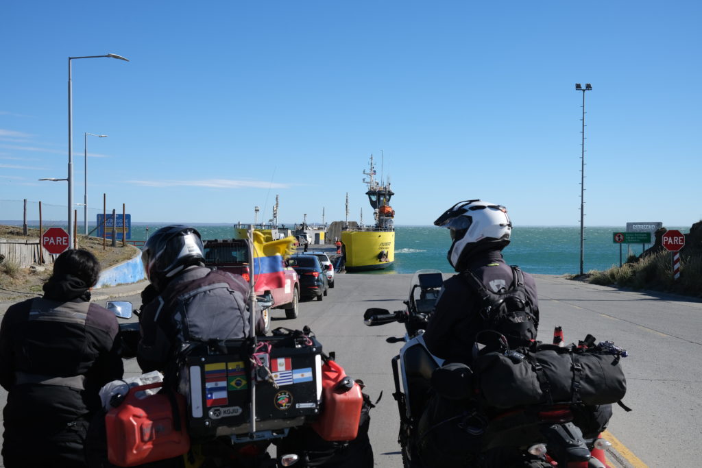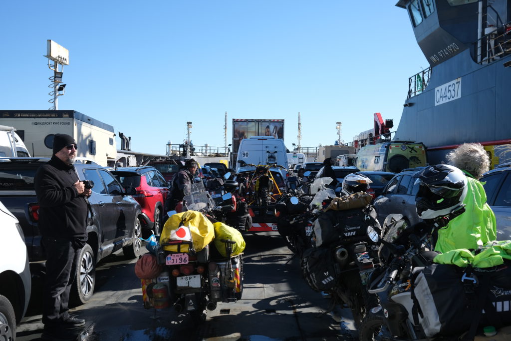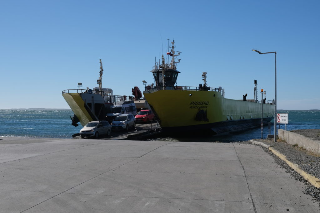 1月4日(日曜):この日はイベントが2つある。マゼラン海峡横断フェリーとチリ出国/アルゼンチン入国。先ずはフェリー、40km位走ると船着き場が見えた。簡易的な作りでチケット売り場は無く、車両はそのまま乗り込み船内でチケットを買う。バイクは9,000チリペソ。乗船時間は25分、キャビン内で座るような所は数名分しかない。基本的に車内で待機である。