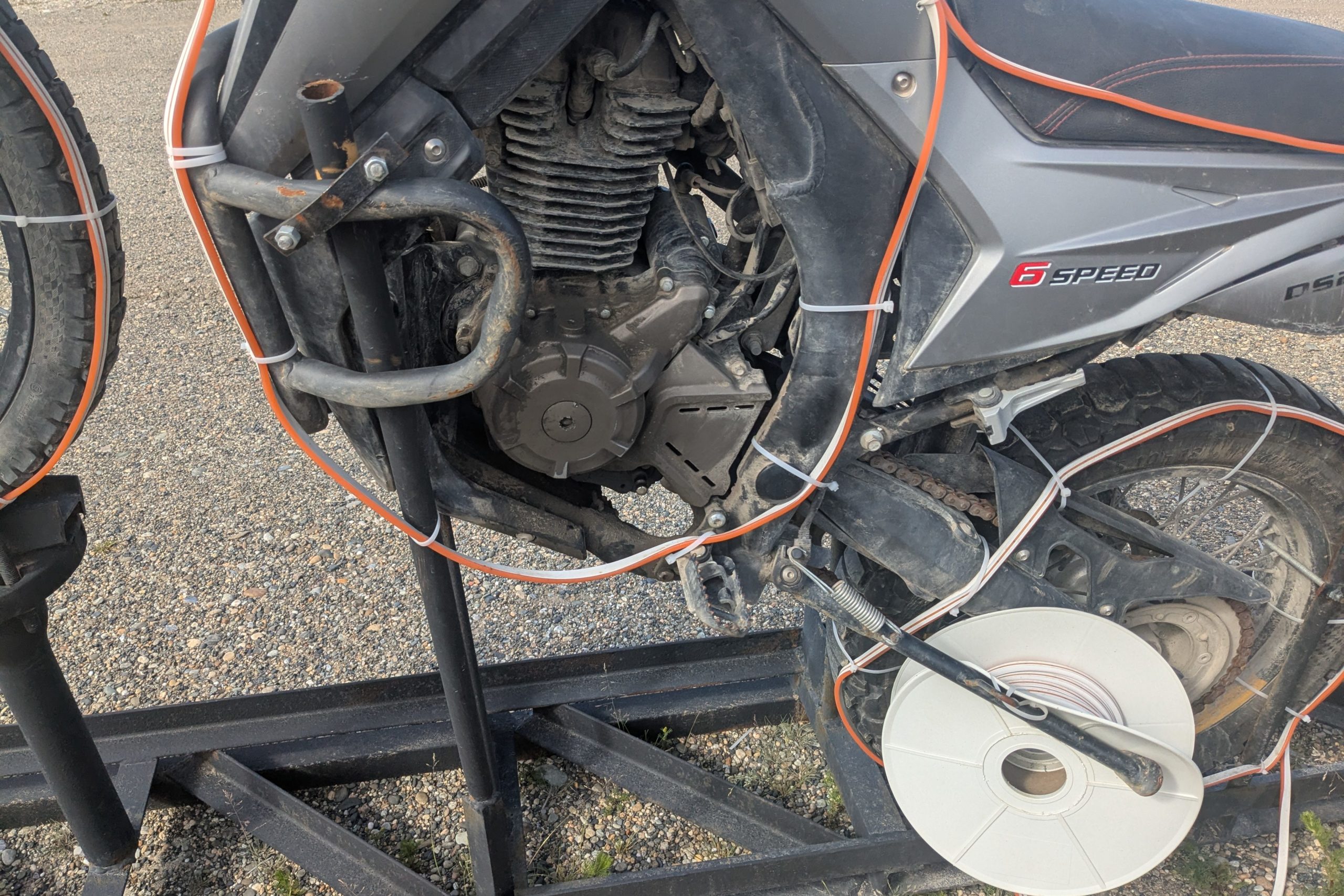 またずっと気になっていたシフトレバー。かなりユルユルで今にも取れてしまいそうなのである。本当は緩いだけで外れることは取付けの仕組み上多分無いんだけど、念の為宿の敷地にあったジャンクのバイクからシフトレバーを頂いた。これで一安心。