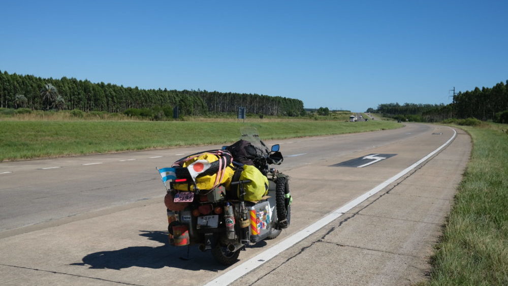前日までは右手奥の方にウルグアイとの国境があったが、この日くらいから右手奥はブラジルとの国境になる。また地面が赤茶色の土になってきて、樹木も多く景観がだいぶ変化してくる。