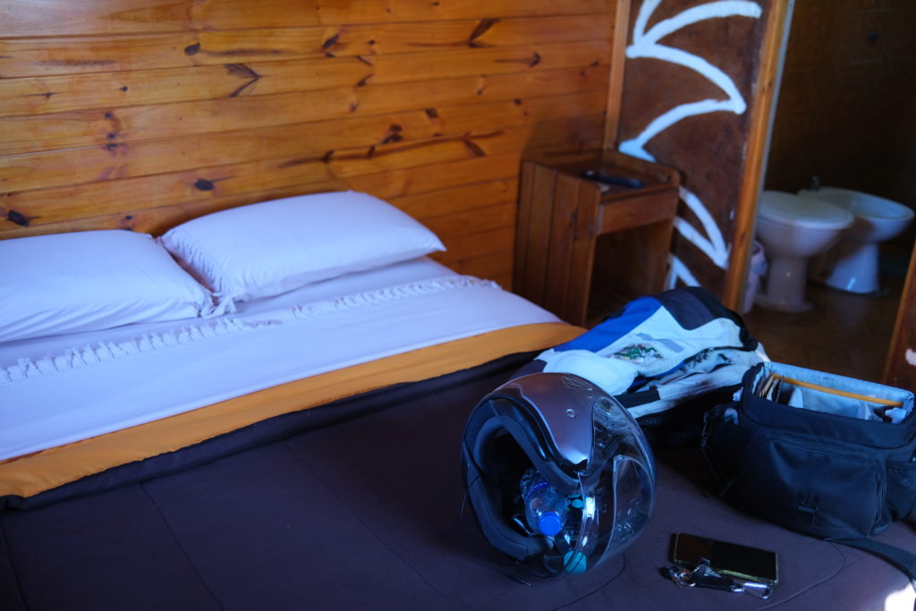 1月19日(月曜):この日は300km超えの移動。片側2車線なのはいいが、路面がうねっていて走り難くスピードが出ない。ようやく目的地に着きチェックインをする。実はこのプチェタには宿が2軒ある(2軒しかない)。口コミ高評価と低評価の2択で、高評価宿は満室で低評価の方を予約するしか無かった。