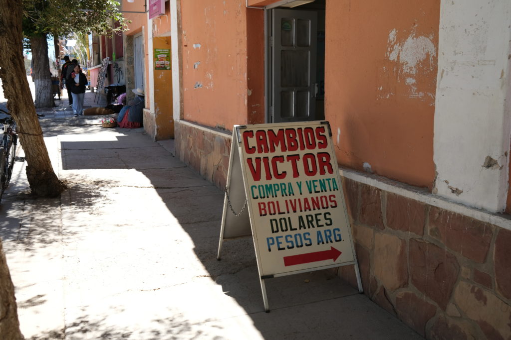 ボリビア通貨はATMで下ろすより町の両替商の方が全然お得らしいので、US100ドルをボリビアーノにする。i overlanderの情報に出ていた店で両替、他店とレートを比べたりはしない。面倒くさいし、多くても少なくても大して違わない。890ボリビアーノになった。