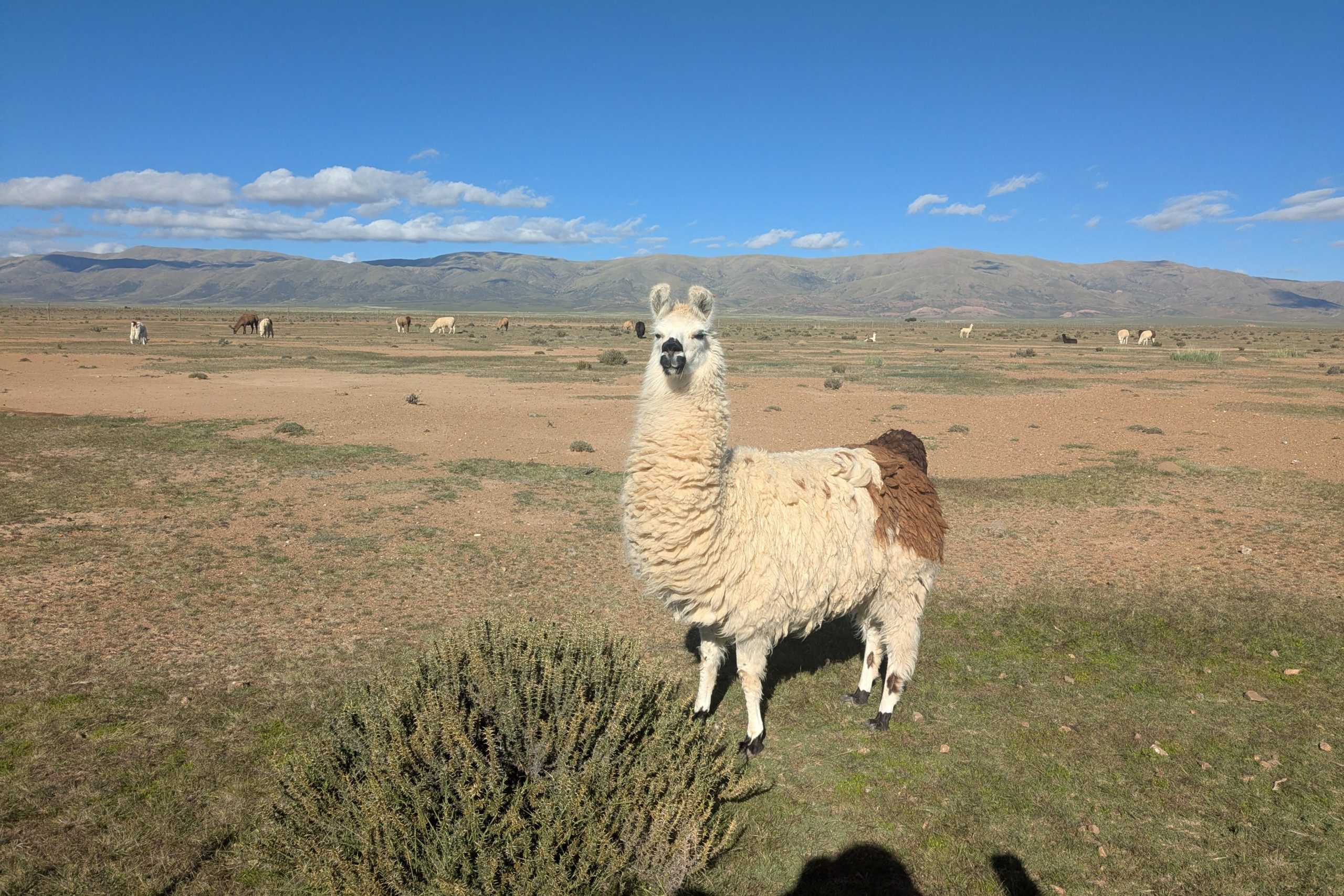 2月4日(水曜):ボリビアとの国境は70km先、途中でアルパカの放牧が見られた。
