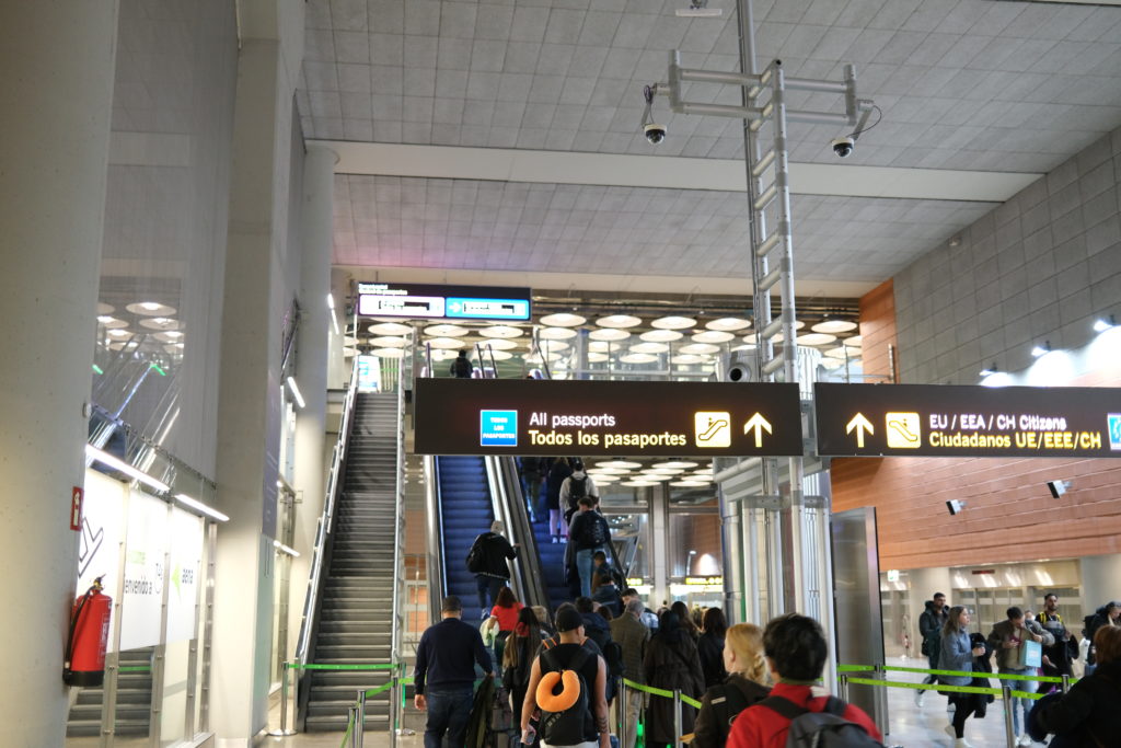 シャトルを降りると、ホームには「EUパスポート」と「それ以外」の導線が区切られていて、そのままエスカレーターに乗る。エスカレーターを降りるとそのままイミグレへの列となっていて分かりやすい。EU出国のスタンプが押され、5ヶ月のユーラシア大陸の旅が終了した。