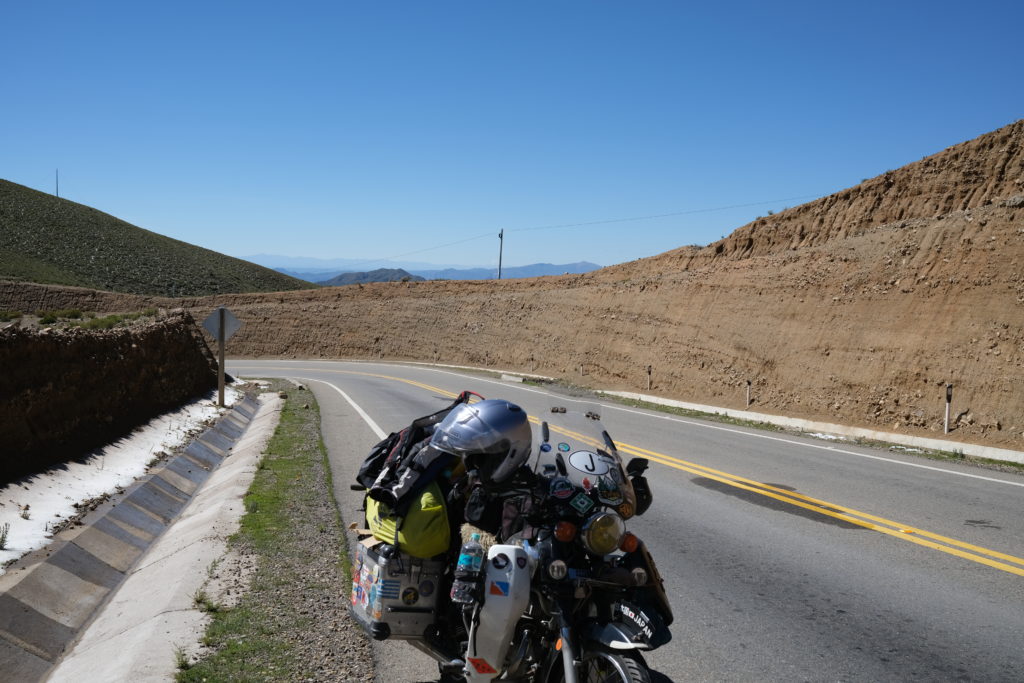 目指すはウユニ塩湖、さあ行こうか。標高2800mのトゥピサの町を出る。快調に走る。徐々に標高が上がっていく。料金所を通過、バイクは無料である。すぐに大きな峠になる。