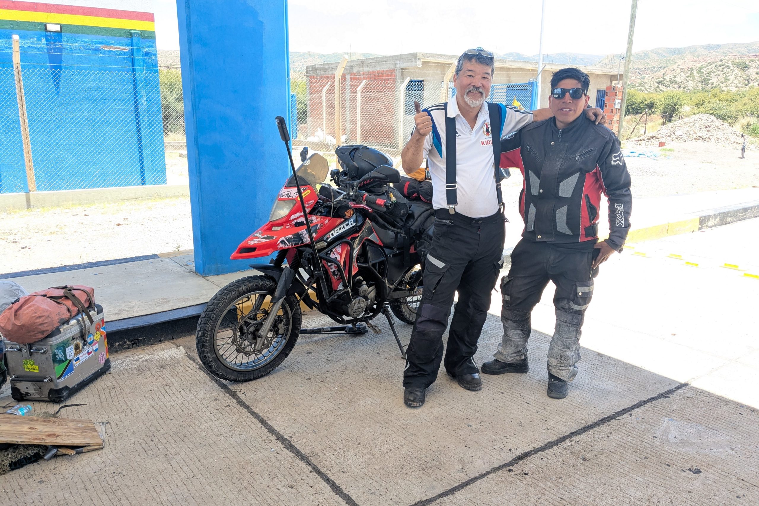 料金所のひさしの下で、さあこれからどうしようと立ちすくんでいたら1人のライダーがウユニ方面からやってきた。エクアドル人だった。いつものように一通り挨拶を交わす。「バイクが壊れちゃってさー」と話していくうちに、エクアドルライダーもこちらに興味を持ち始めたようだ。