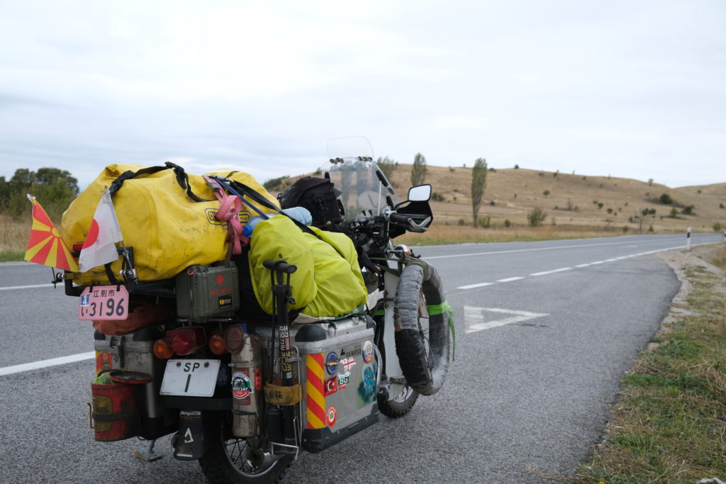 国境のあった峠を下る。ブルガリア側とは幾分気温が高い気がする。ブルガリアとの時差が1時間、日本とは7時間遅れ。