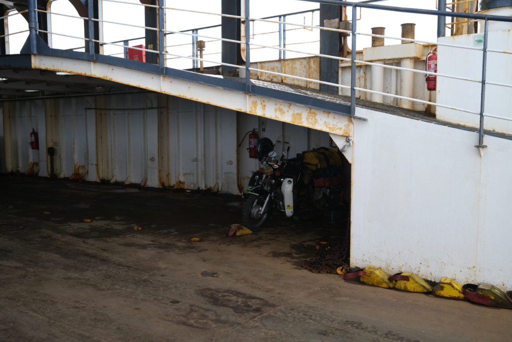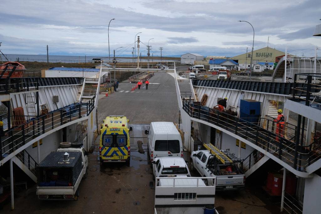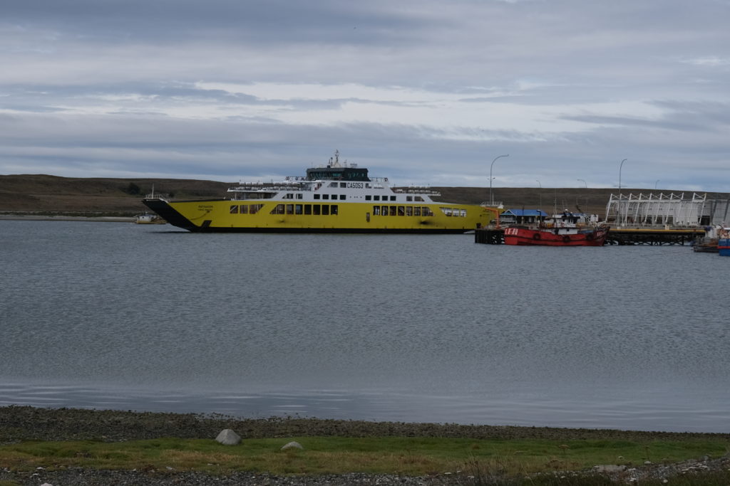 12月29日(月曜):朝食を早めに済まし、フェリー乗り場へと急ぐ。マゼラン海峡の向こうにはフエゴ島があり、船は9時の出港だ。ただ万が一フェリーに乗れなくても陸路大回りでフエゴ島には行ける。街の中心部から15分くらいの距離なので、まあ余裕だった。乗船運賃は人間とバイクで26,000ペソ。