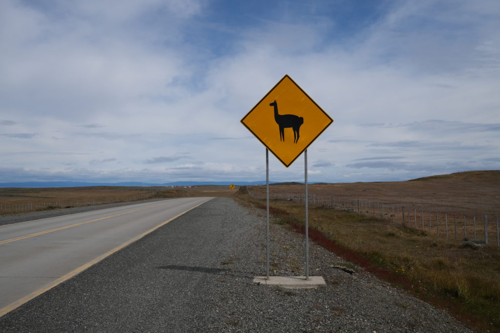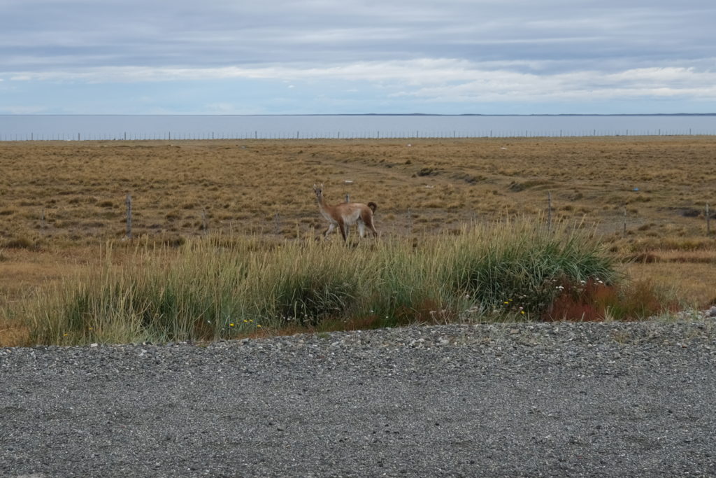 パタゴニアには「グアナコ」というラクダ科の動物がいて、道路わきで日に何度も見かけるのだけれど、警戒心が強く近づくとすぐ逃げていってしまう。これまで幾度も写真撮影を試みたが全部失敗。ところがここフエゴ島のグアナコは、ややのんびり屋さんで逃げるのも遅い。バイクをそーっと止めやっと1回だけ写すことができた。
