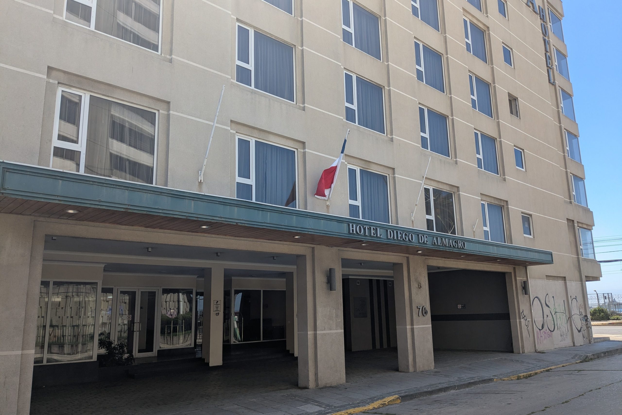 ネット情報ではバルパライソまでは2時間前後で着くらしいが、この日は何かの理由で道路が通行止めらしく、遠回りのルートで走ったようである。ということで3時間弱でバルパライソのバスターミナルに到着した。さて、バルパライソは治安が悪いので有名な町、特にターミナル周辺も要注意エリアである。ホテルまでは約1kmちょっと、気合いを入れて歩くことにする。