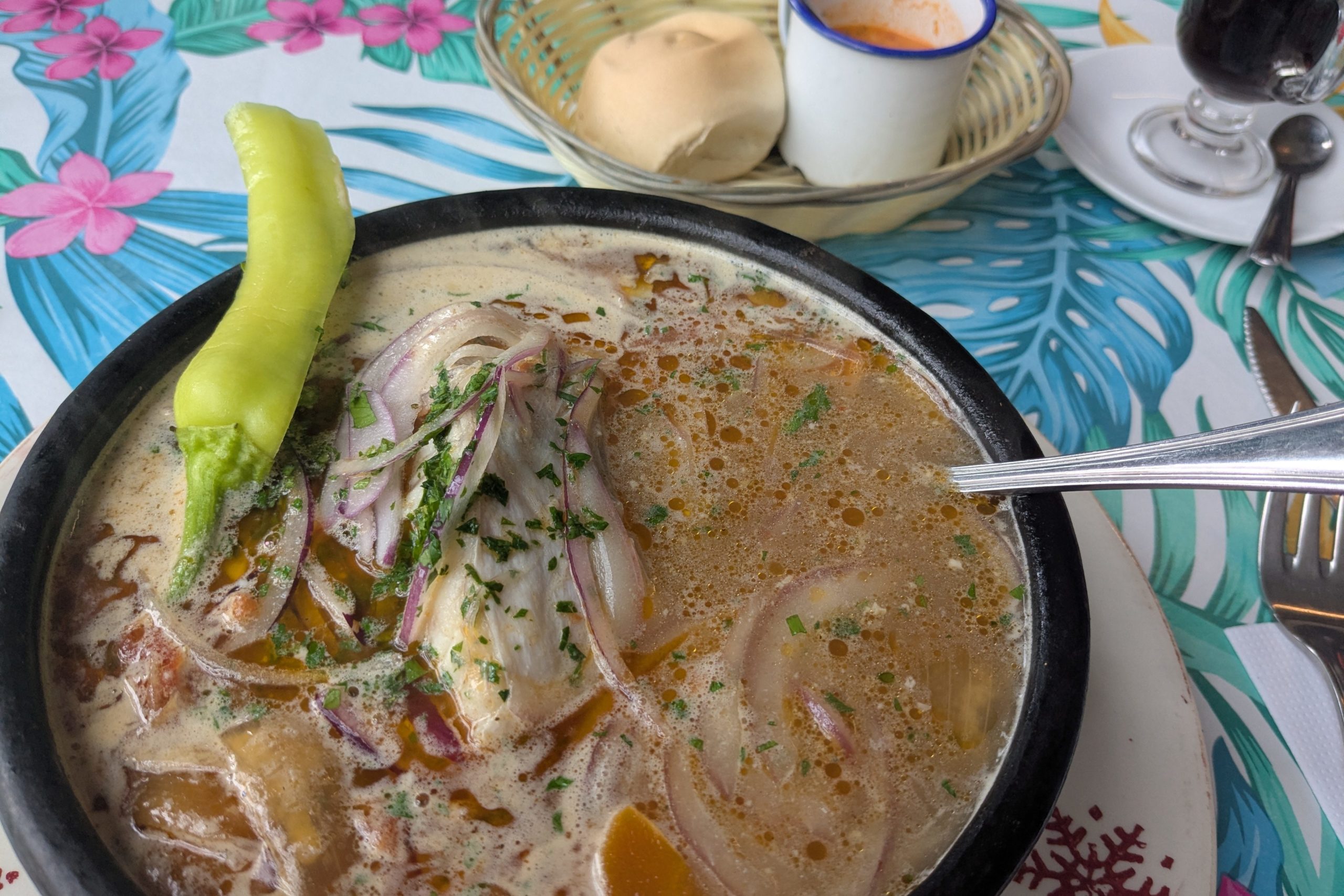 「カルディージョ・デ・コングリオ」白身魚の煮込みスープ、魚介の出汁スープで美味しい。
