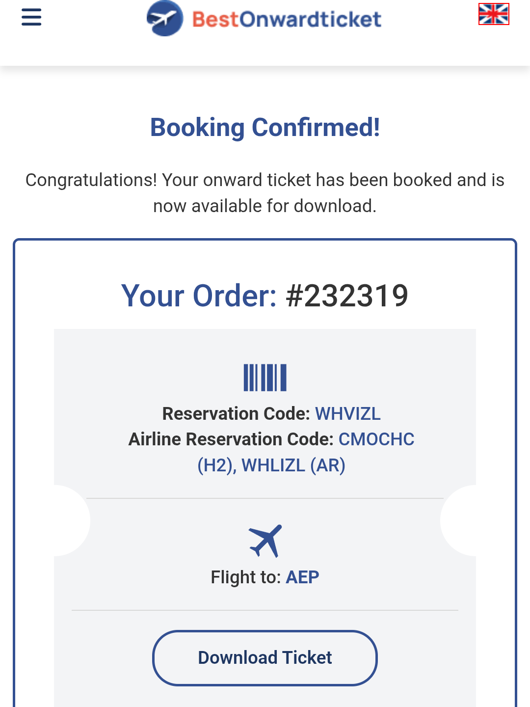実際のダミーチケットは、筆者は「Best Onward Ticket」を使っている。今年前半までは12USドルだったのに最近14USドルに値上がった。そしてこのチケットは48時間有効の正式なもので違法ではない。