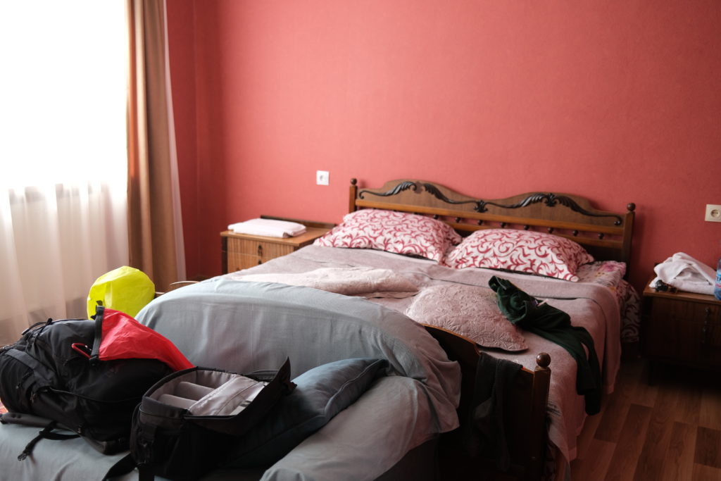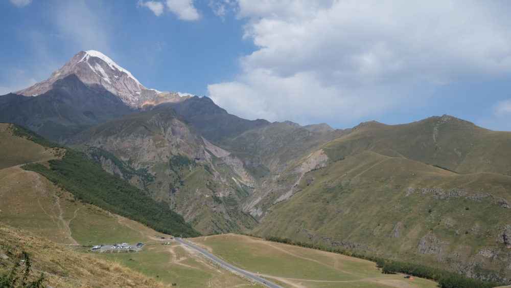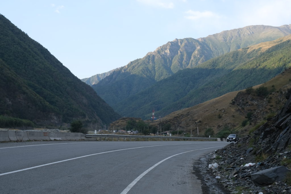 急坂を下り、観光ビジネスで賑やかなステパンツミンダでロシア・ルーブルをジョージア・ラリに交換。この日の宿は、街の喧騒から外れた4kmくらい離れた場所にした。
