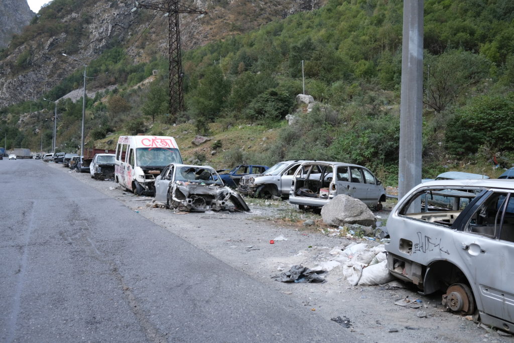 カフカス山脈の麓にあるホテルを出発し、国境へと向かう。
