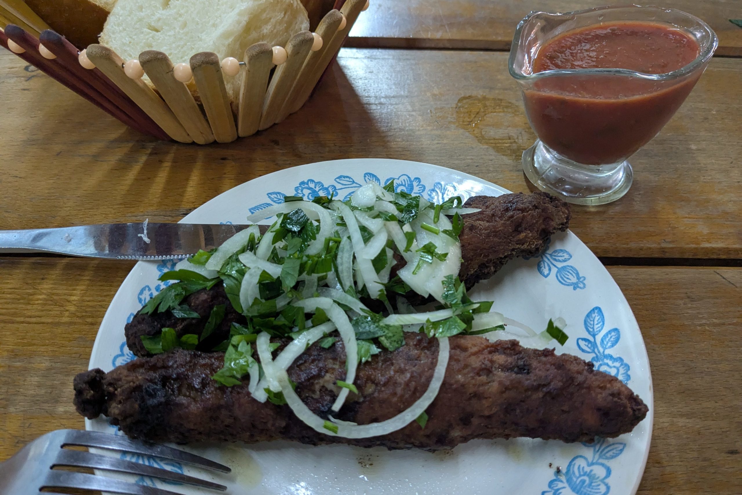 クタイシはただの中間地点とあまり期待はしていなかった。ところがこの町で望外のB級グルメ体験ができた。まずはジョージア定番グルメのヒンカリ。この旅でロシア〜中央アジア〜ジョージアと餡を皮で包んで茹でた、似たような食べ物を何度も口にしてきたが、ここのがベスト。ダントツで美味かった。