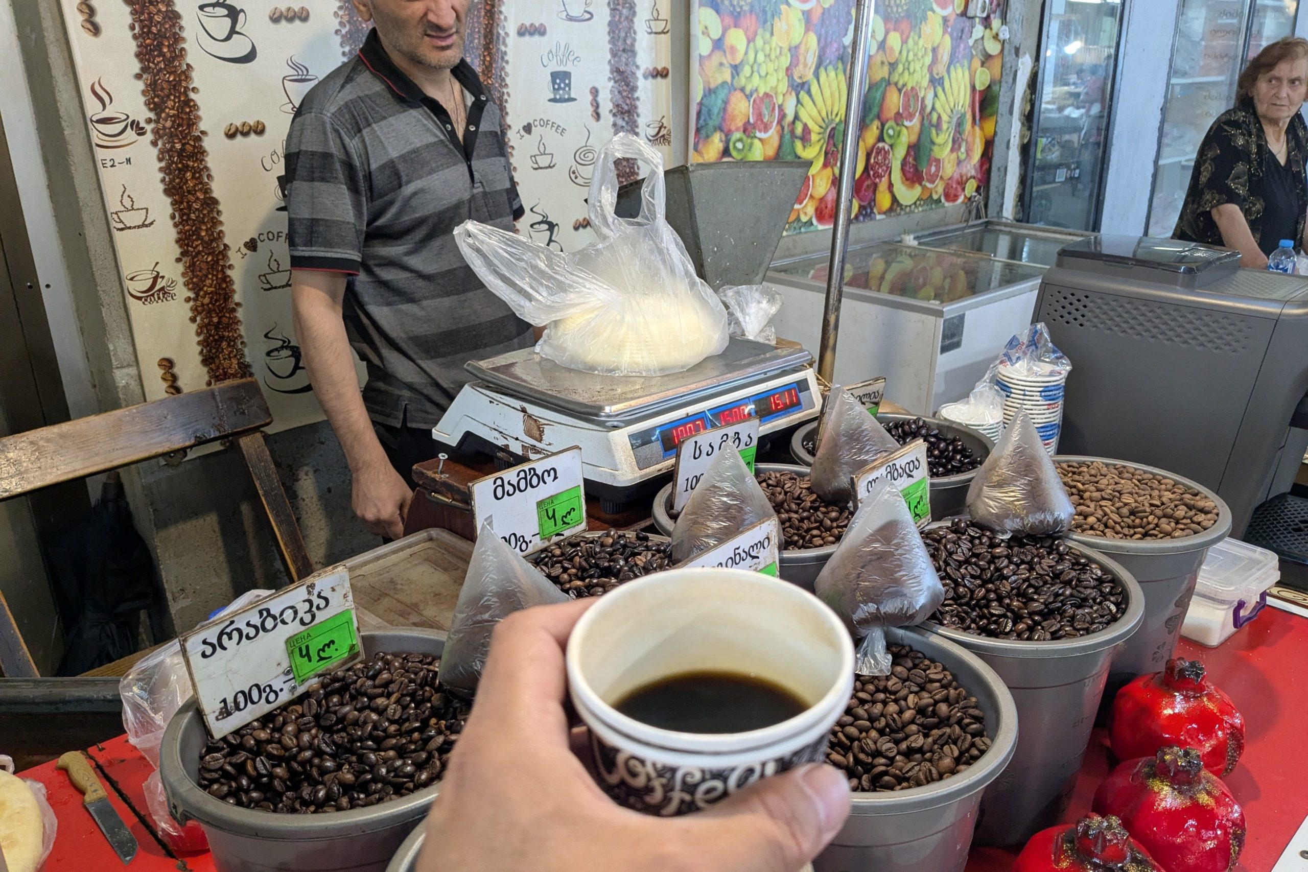 さらに彷徨ってみると、コーヒー豆屋さんがあった。マシンも置いてあったのでコーヒーを注文する。