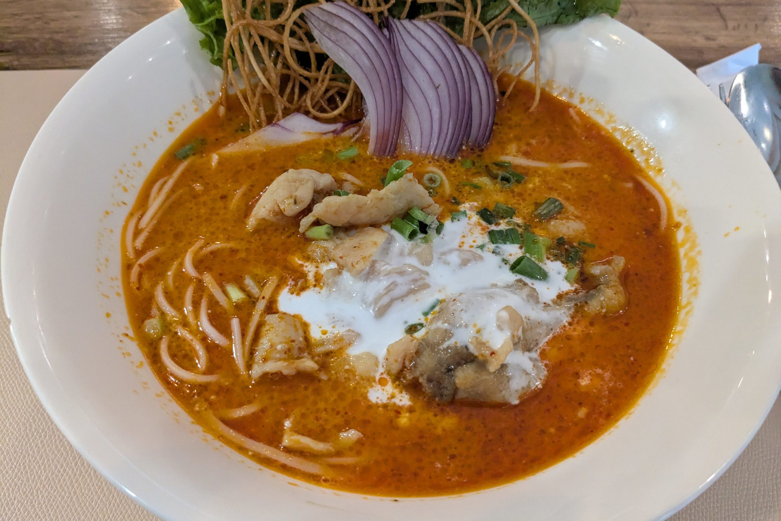 晩ご飯は「カオソーイ」、タイ料理です。ジョージアのさほど有名でもない町に、なぜこんなにもタイと同じ味を出す店があるのか。
