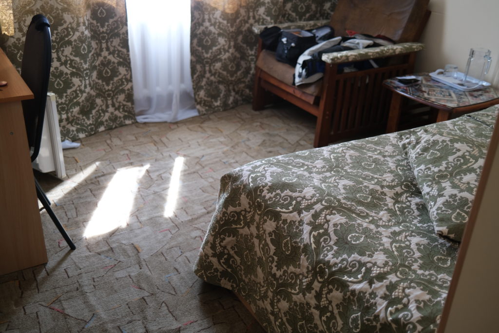 ホテルはソ連式のやや古めの所。でもなんか落ち着く雰囲気がして、筆者は嫌いではない。2泊の予定。