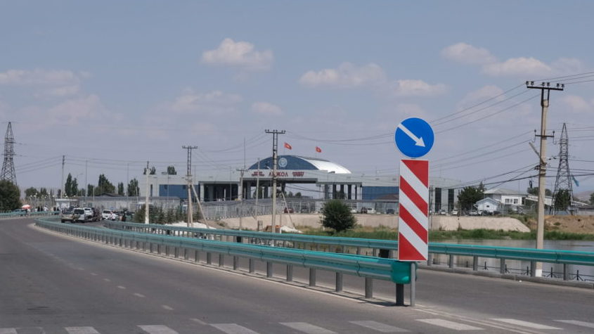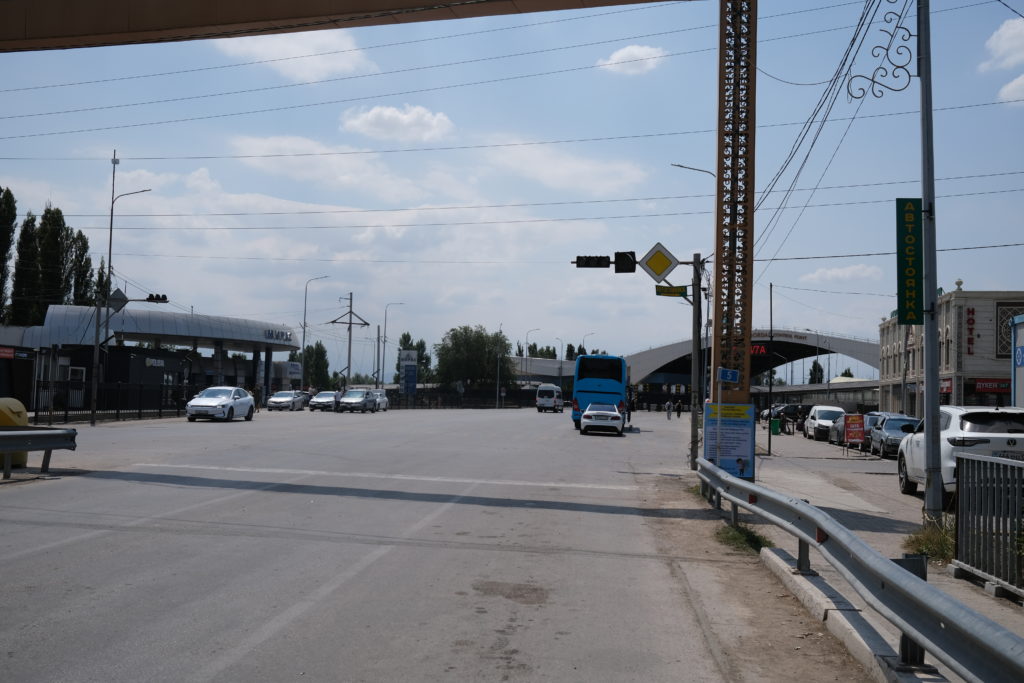 カザフスタンとキルギスの国境は200kmほど西にある。途中でメインルートを外れて左手の低い山に分け入っていく。しばらく高原状になった地形を走り、その後は一気に下っていく。コルダイ市街に入りそのまま進むと自動的に国境ゲートとなる。