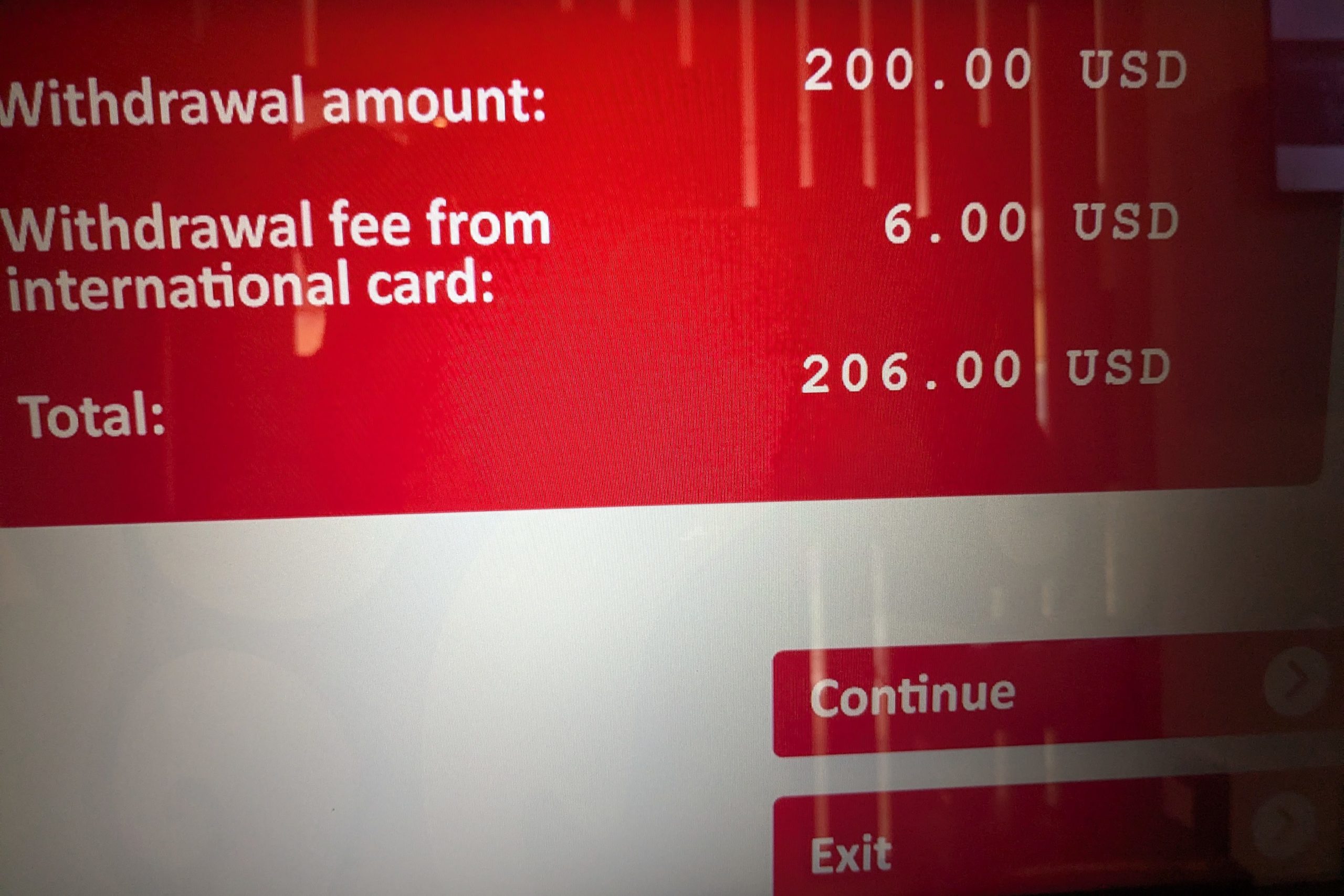 3%の手数料が発生するが気にしてもしょうが無い。全て終了したら「EXIT」を押さないとカードは出て来ない。