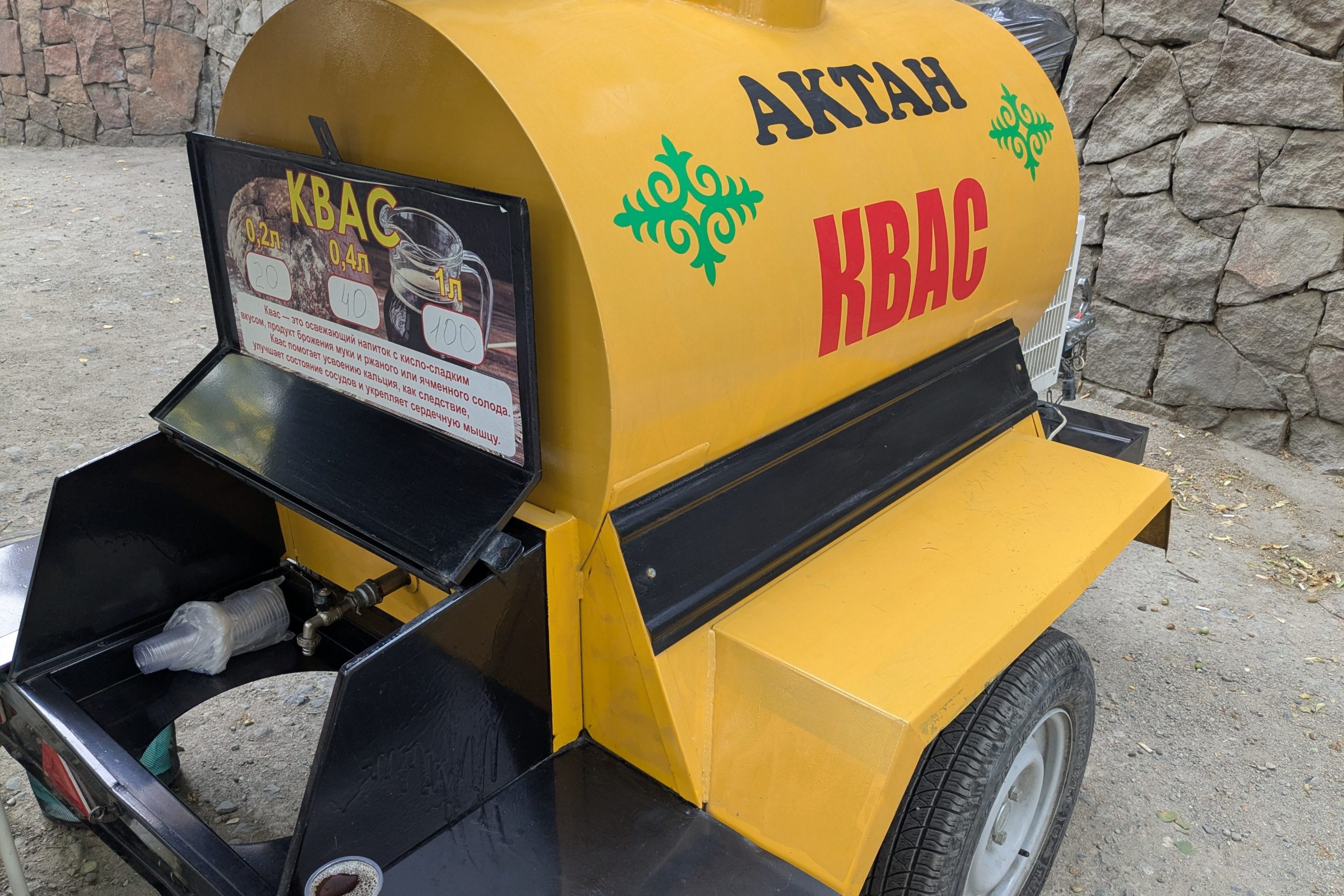 筆者の好物クワスがキルギスにもあってラッキー。それぞれ微妙に味が違っていて面白い。