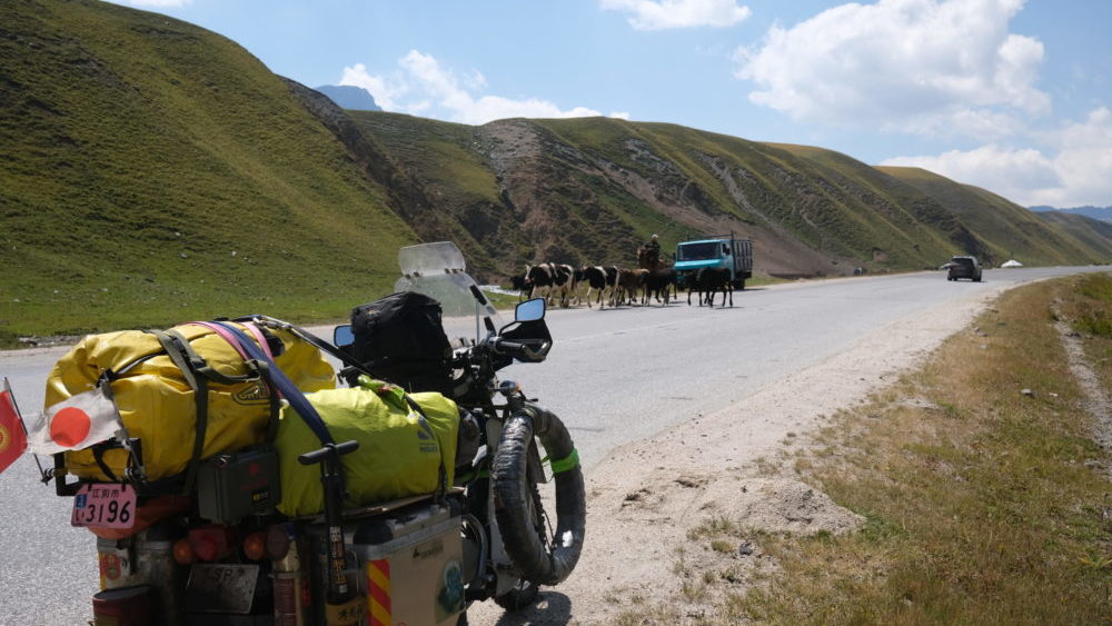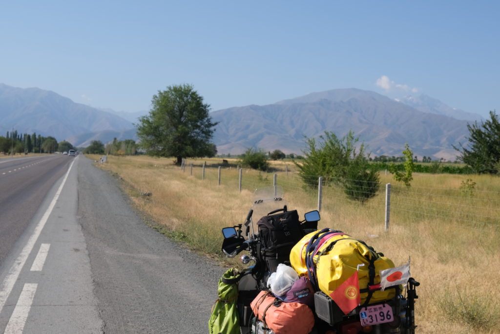 今までシベリア〜カザフスタン〜ビシュケクと、山岳地帯とは言えない軽い起伏や真っ平らな大地を走ってきたが、これからは標高の高い地帯へと突入していく。