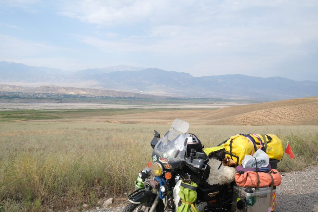 8月7日(木曜):山から下りてくると、ウズベキスタンが近くなってくる。筆者はこのあと、キルギスからパミールハイウェイのあるタジキスタンに行く。無事パミールを走り抜けたら、その次がウズベキスタン。そしてウズベキから再びカザフスタン、これまた再びロシア、ジョージア(グルジア)、トルコという順で旅を進めていく。