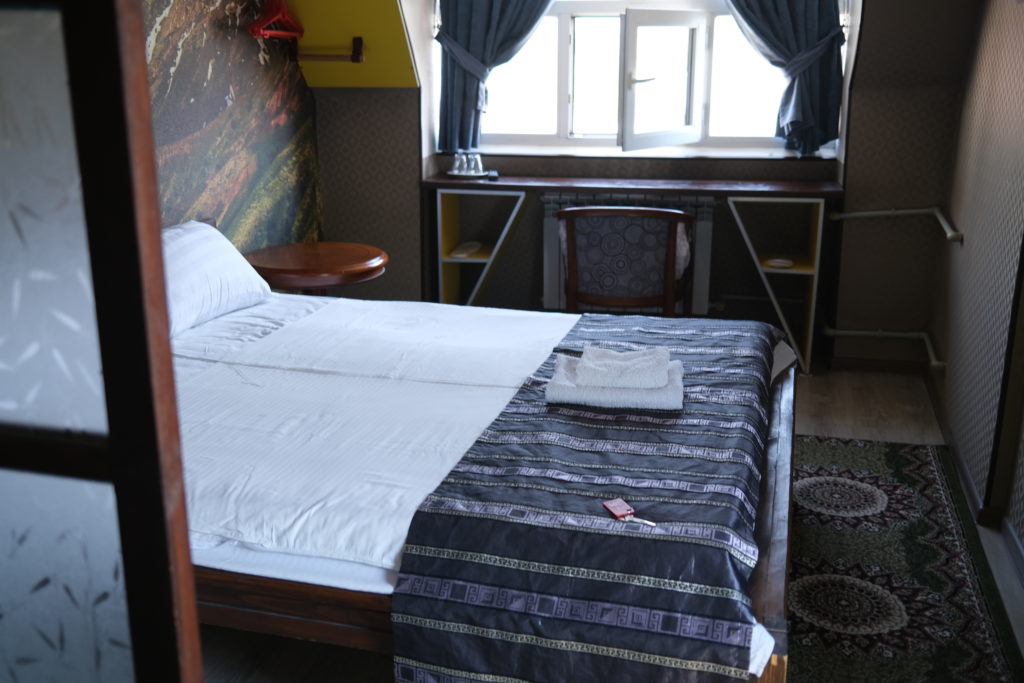 1区間目の宿は周りに何もない山の中。Expediaで予約ができたのだが、ドミトリーでUS20ドル。高いなと思いつつ他の選択肢が無いので決めた。ホテルに着いてみると、ありがちな「予約されたか支払い済かはっきりしない」問題に直面。結局、ツインルーム個室を割り当てられた。20ドルで個室なら、まあ却ってラッキーか。