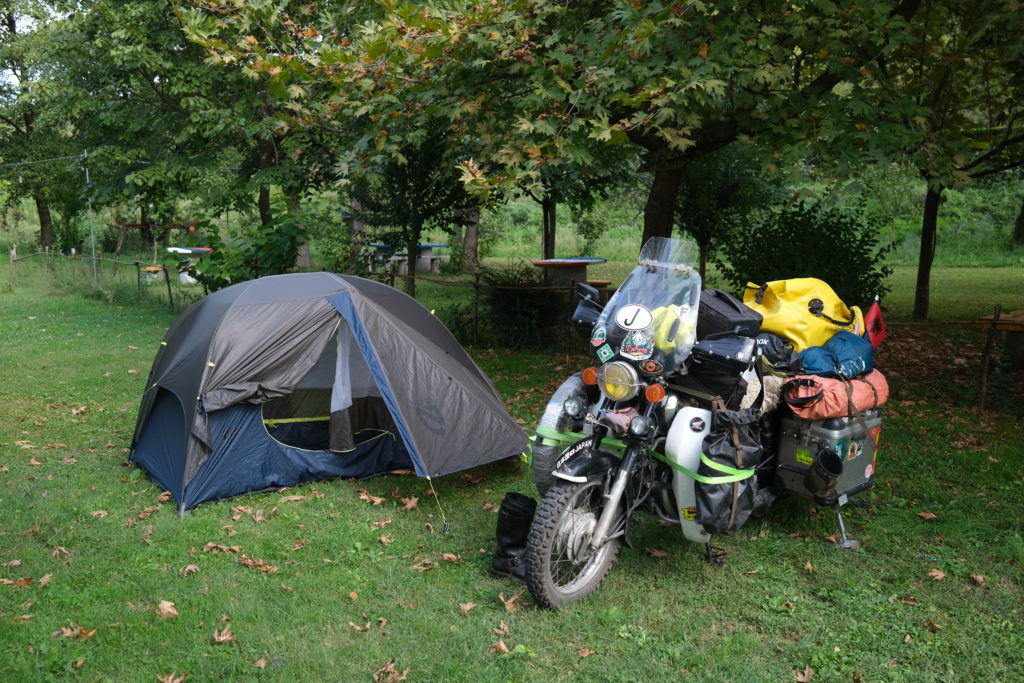 この日の宿泊はキャンプ場。かなり山を下ってきたので、もう地中海性気候の地帯になったかもしれない。気温もブルガリアなどよりも高く、過ごしやすい。
