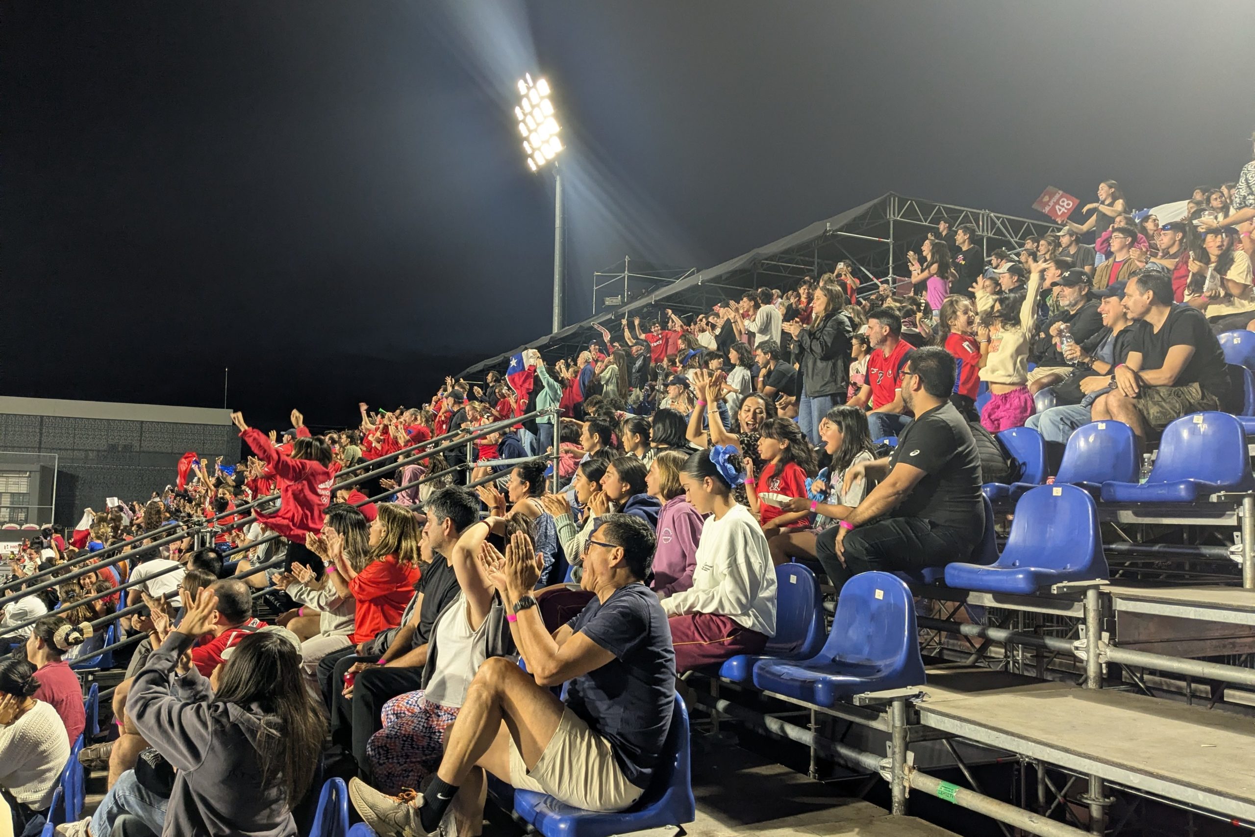 チリのサポーター、チャンスでは床を踏み鳴らし、「チ・チ・チ・レ・レ・レ」の応援。