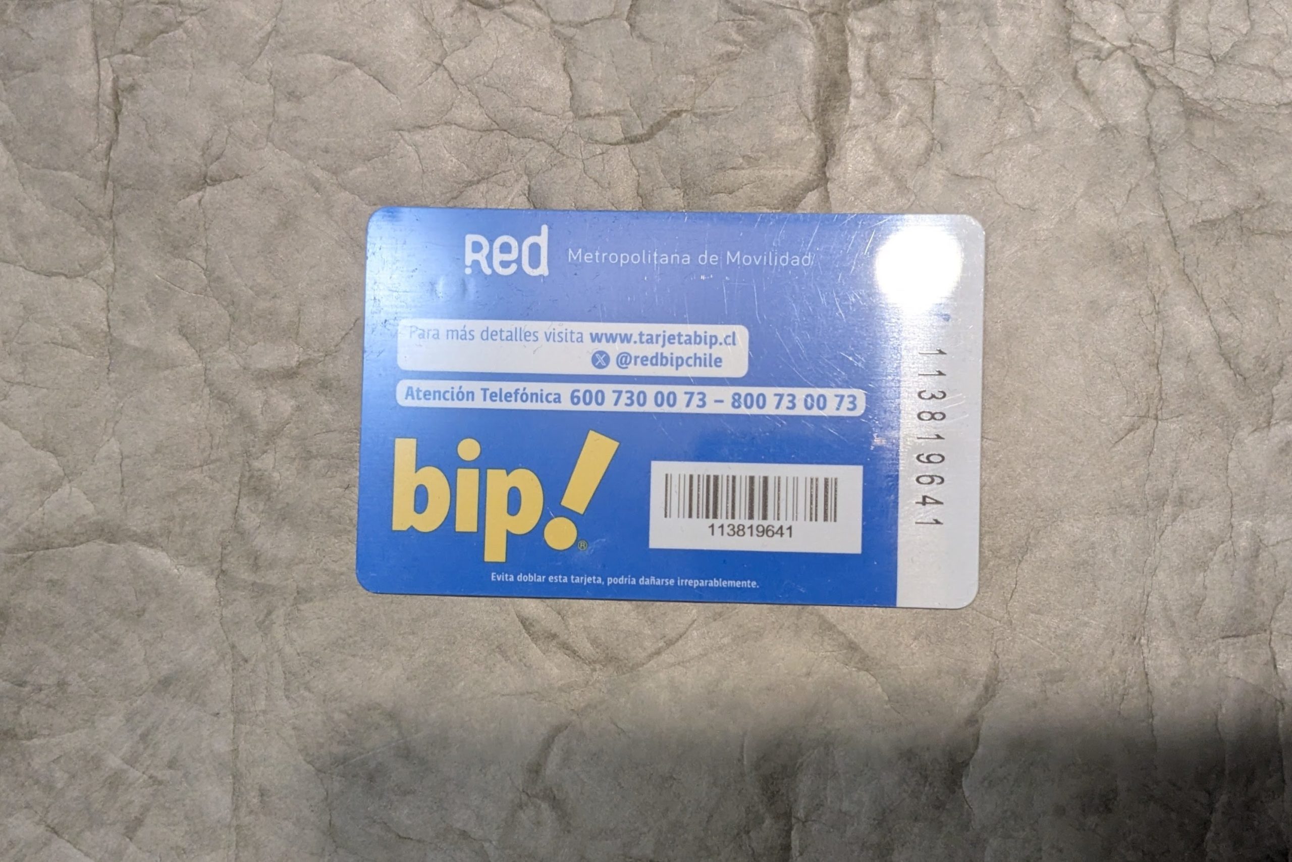 プリペイドカード、ゲット。これでサンティアゴ市内は地下鉄とバスで移動できる。チャージは地下鉄駅の窓口や機械でやる。