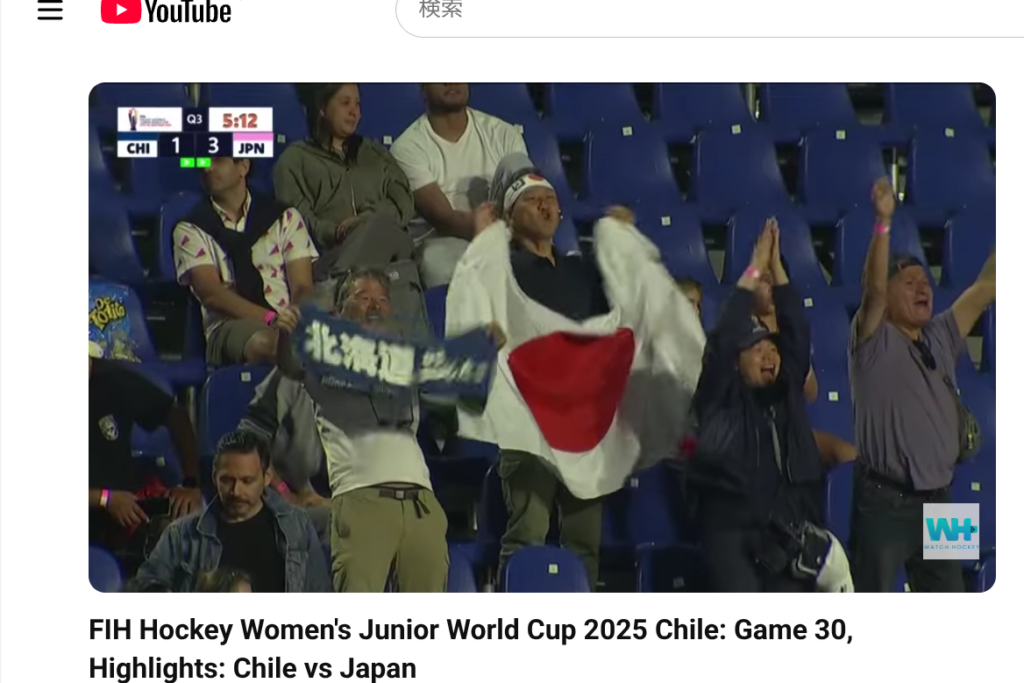 筆者たちの日本の応援が公式YouTubeに映ってました。ファイターズタオルがチリでも大活躍だ。